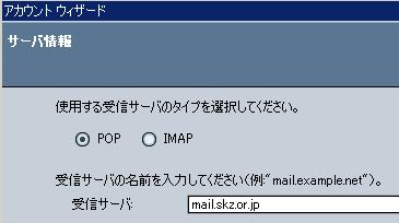 ↑ここの「mail.skz.・・」は、指定のサーバー名を入れてください。